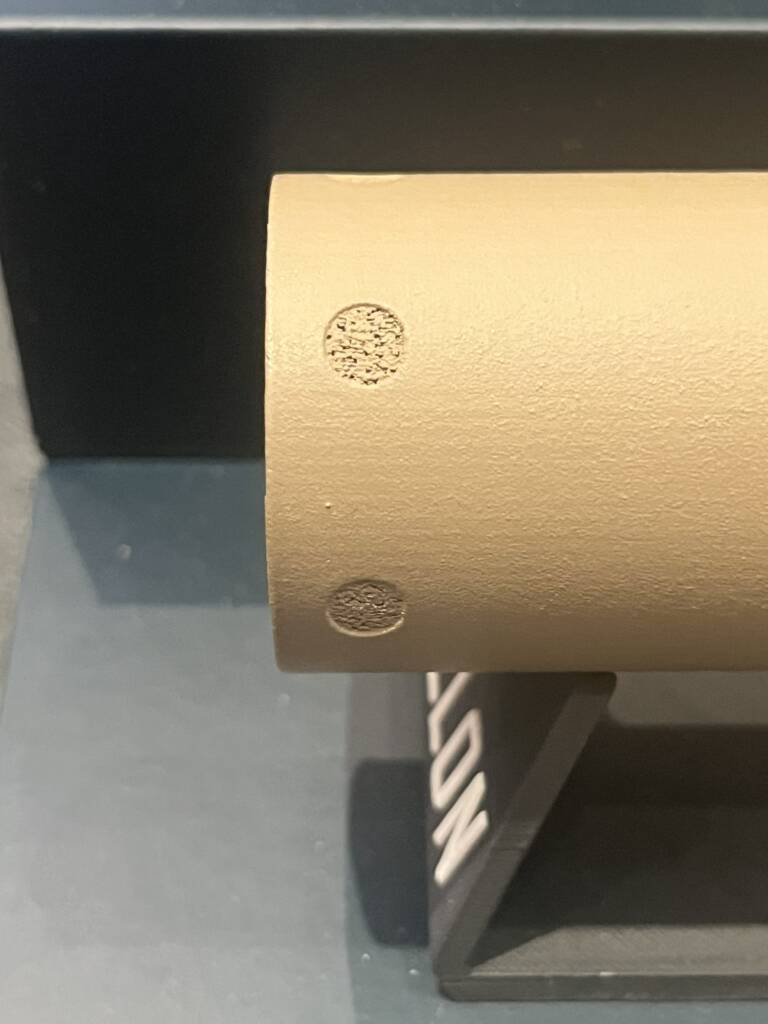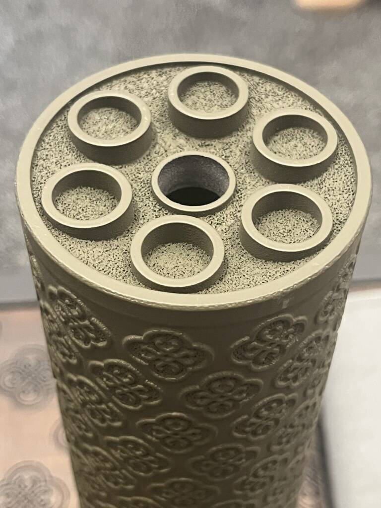 The suppressor is fully 3D printed from titanium.
